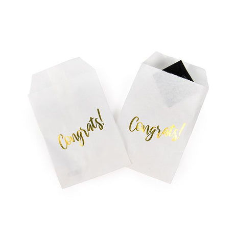 Reguliere prijs €14,05Eenheid prijs /Niet beschikbaarPaper Zakken Wit Met Goude Congrats Bedrukking 76x127mm - 100 st