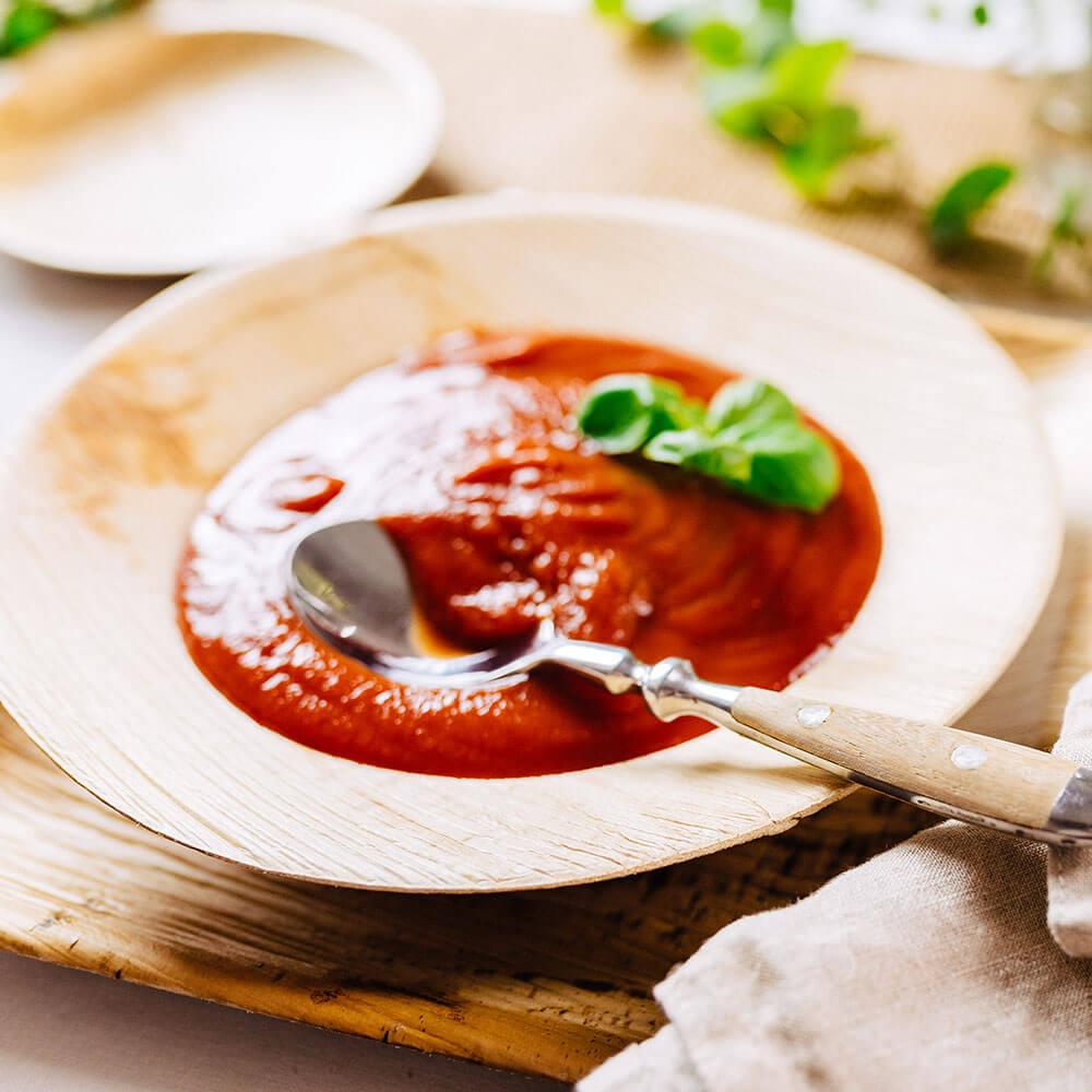 Palmblad producten kunnen na verloop van tijd zacht worden, hierdoor raden wij je aan om de producten alleen te gebruiken bij directe consumptie en niet om voedsel voor een langere tijd in te bewaren.